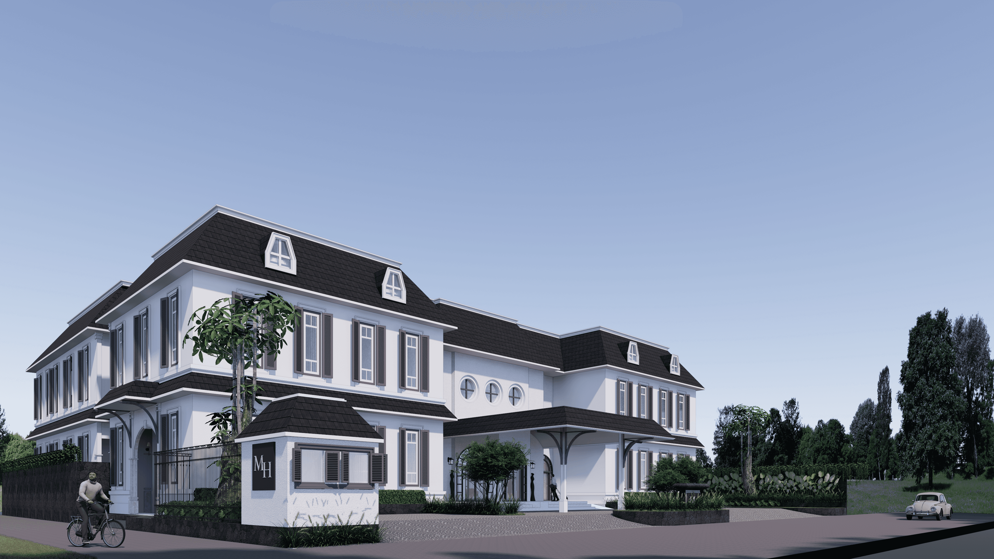 The Mota Hotel is a two-story development with 20 guest rooms, including a presidential suite and several executive suites, complemented by a swimming pool, banquet hall, and all-day dining area. Occupying a 40 m × 40 m site with a maximum lot coverage of 60%, the design adopts refined colonial-style architecture, blending heritage-inspired character with modern hospitality to create a distinctive and welcoming destination.